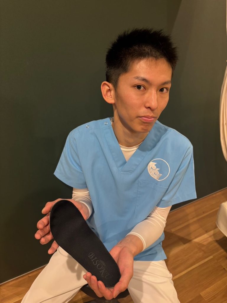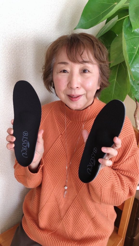 オーダーメイドのBISOKUを履いたこと、自然と背筋が伸び、姿勢が良くなりました。特に腰への負荷が減った様に感じました。足底から持ち上げられている様な感覚で身長が伸びた様にも感じます。