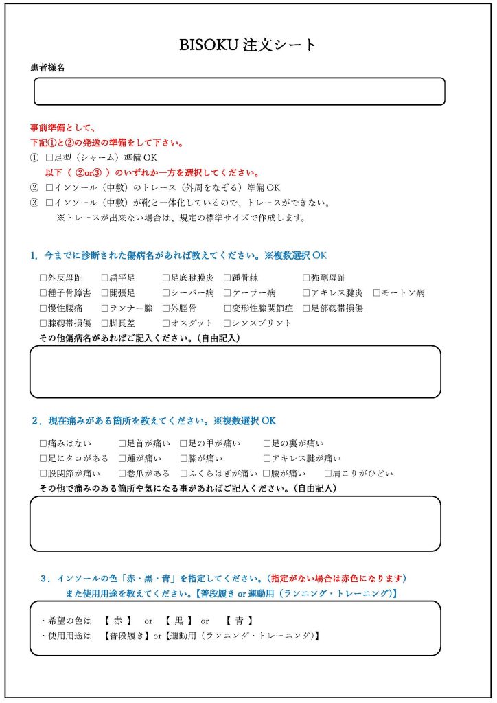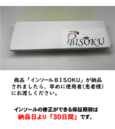⇒製作完了次第、準備「インソールBISOKU」が発送されます。