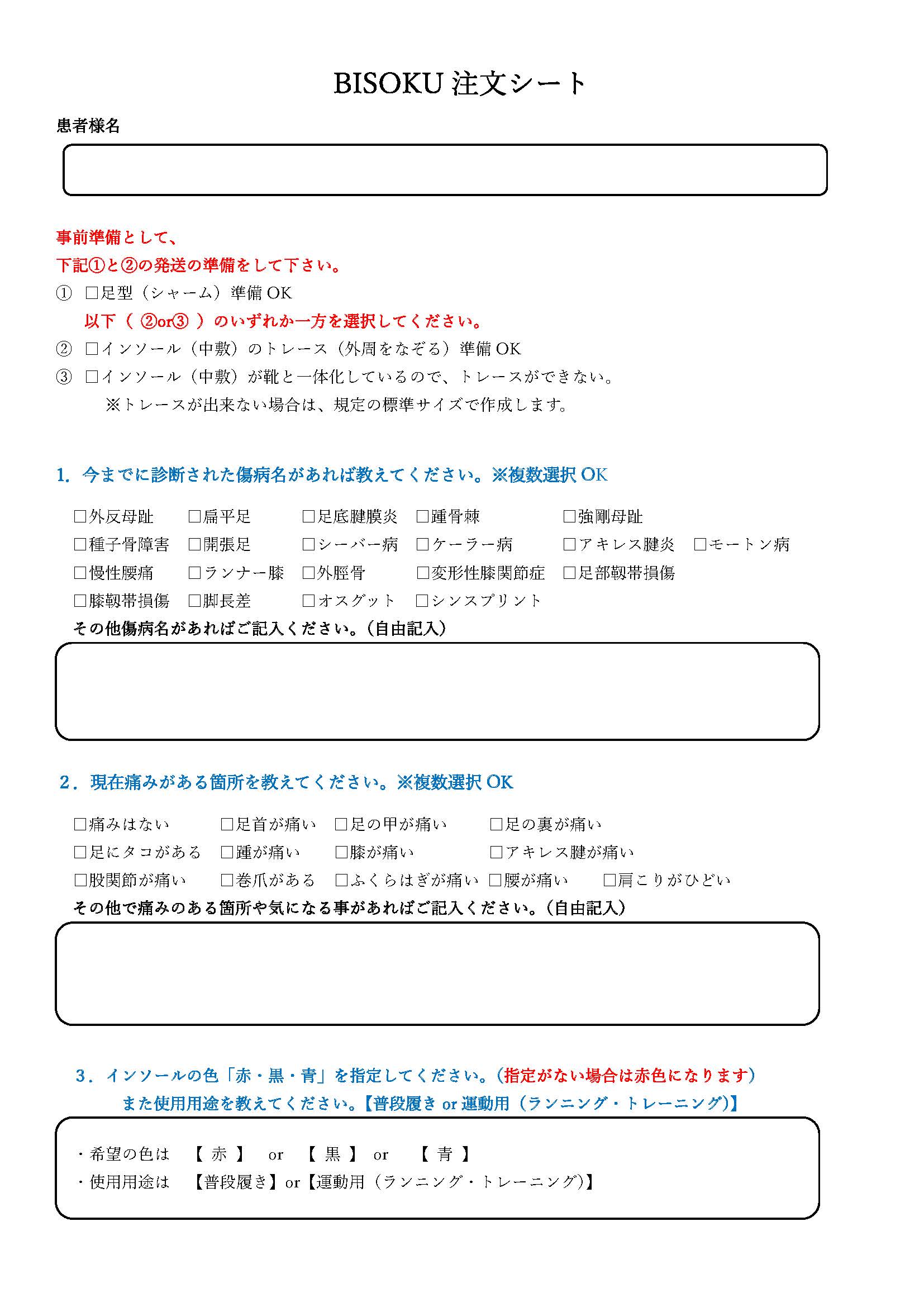 1,インソール発注システム利用料※月額利用料0円