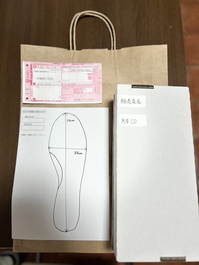 ②修正したい「インソール」と「修正指示書」を同封し、工場へ発送